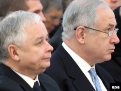 Польшадагы эскерүү форумуна өлкөнүн президенти Лех Качински (солдо) жана Израилдин премьер-министри Беньямин Нетаньяху (оңдо) катышты, 27-январь, 2010